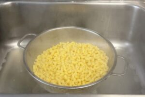 - Gradually mix in about three-quarters of the shredded cheese until the pasta becomes creamy and gooey.