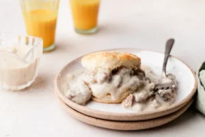Biscuits and gravy usually happen in my kitchen when I wake up hungry and slightly annoyed at the world. It’s not a planned meal. It’s more of a “nothing sweet sounds right and cereal feels insulting” situation. One morning, I opened the fridge, saw sausage, saw milk, and decided this was a biscuits-and-gravy kind of day whether I was ready or not.