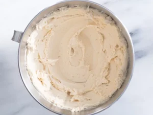 - Mix in the eggs and vanilla, beating until the mixture looks fluffy and well combined.
