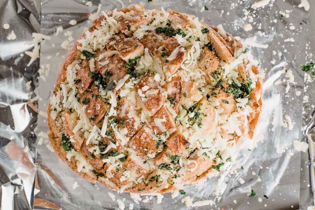 This version uses a crusty loaf like sourdough or Italian bread, sliced into a grid so every piece is loaded with melted cheese and buttery goodness. As it bakes, the cheese melts deep into the cracks while the edges turn slightly crisp, giving you the perfect balance of soft and crunchy textures.