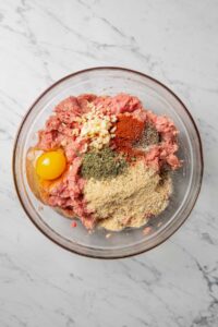 - In a large bowl, mix the ground turkey, breadcrumbs, egg, paprika, cayenne, salt, pepper, garlic, and oregano until well combined.